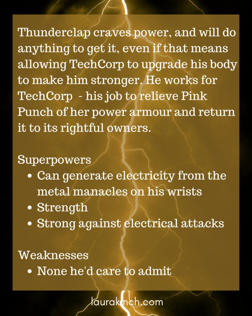 I’ve been writing some character bios for my Pink Punch characters. Here is the next one – Thunderclap.